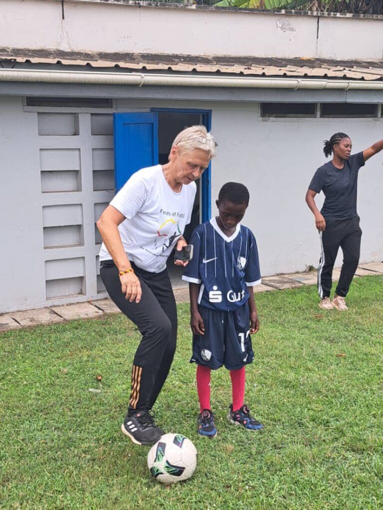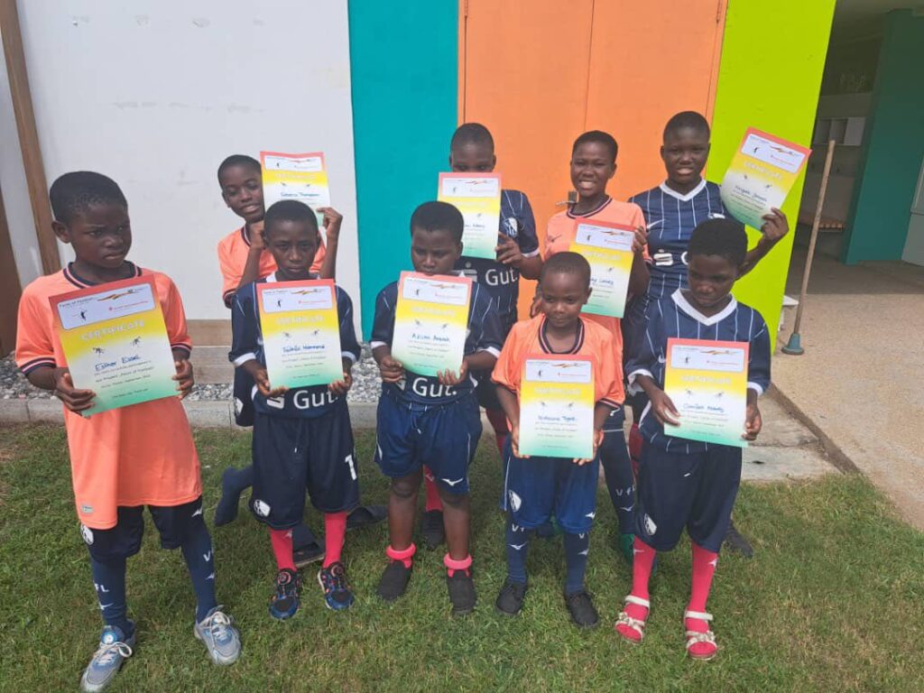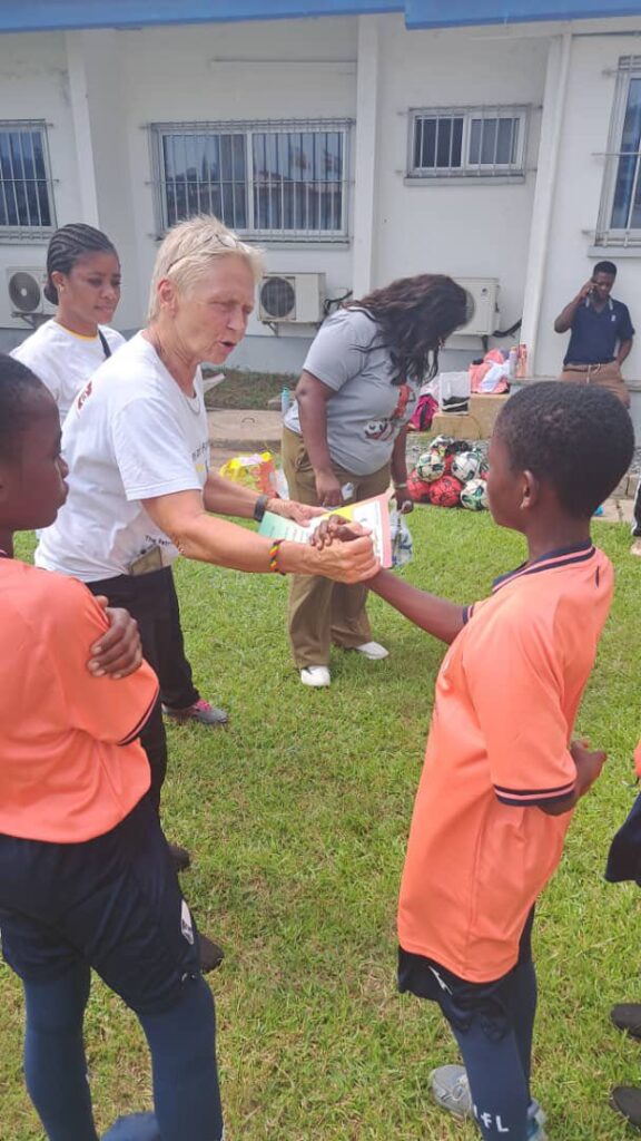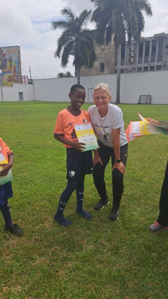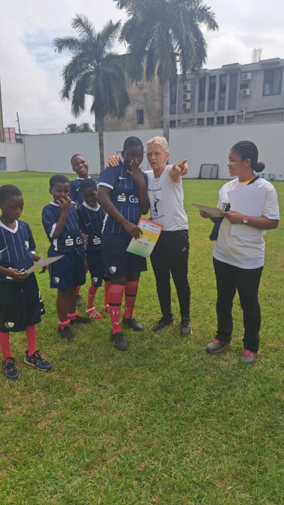 Frauenfußball steckt in vielen Ländern noch in den Kinderschuhen. Das weiß Petra Landers nur zu gut, schließlich war sie Mitglied der ersten offiziellen Frauen-Fußballnationalmannschaft, die auch in Deutschland erst 1982 gegründet wurde, und gewann später die Europameisterschaft. Umso schöner, dass sie mithilft, die Mädels an der UWSA für den Fußball zu begeistern. Und man sieht förmlich, wie viel Spaß alle Beteiligten hatten! Zum Abschluss gab es Teilnahmeurkunden für unsere Fußballmädels. Petra Landers erhielt für den EM-Sieg 1989 übrigens ganz anders als ihre männlichen Kollegen nur ein Kaffeeservice – auch daran sieht man, dass Frauenfußball selbst in Deutschland nicht immer selbstverständlich war. Hoffentlich haben unsere Mädels es mal leichter -ganz egal, was sie für ihre Zukunft planen!